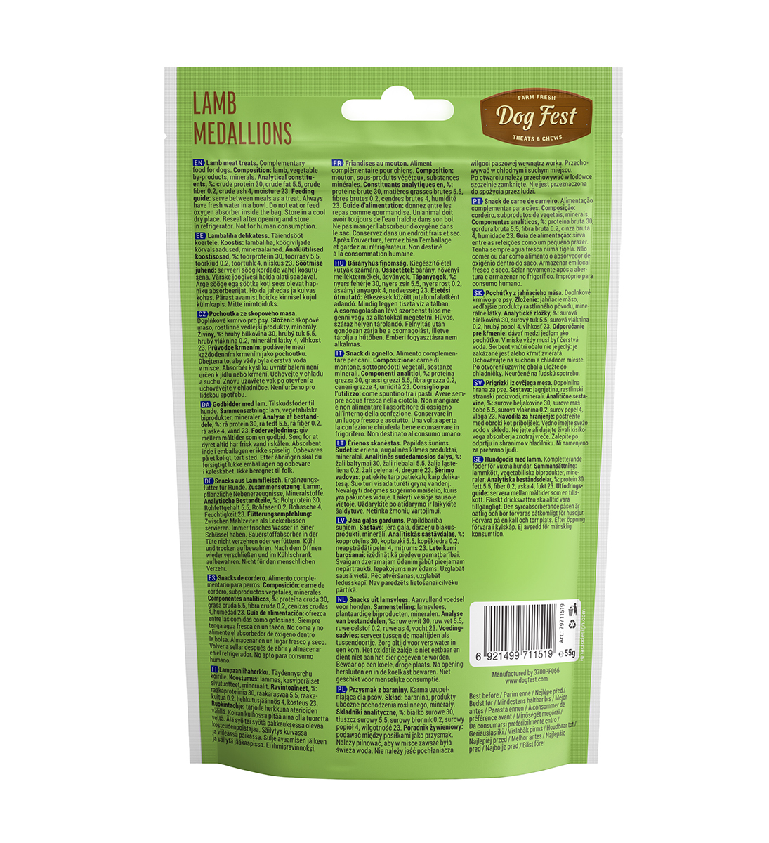 Chewy medallions are made of farm lamb. A perfect size for smaller breeds. These mouth-watering dog treats are high in protein and easy to chew. Aren’t they just perfect?