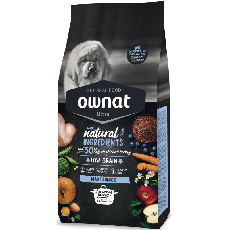 Made with fresh chicken and natural ingredients, Ownat Ultra Maxi Junior Dog Food is highly palatable, making mealtimes something your puppy looks forward to.