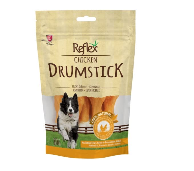 Reflex Chicken Drumsticks Treats are a delicious and high-quality reward for your canine companion. Made with real chicken, these treats offer a savory flavor that dogs love. The drumstick shape adds a fun and engaging element to treat time, making it a delightful experience for your furry friend.