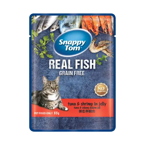 Cats deserve food that nourishes their body and delights their palate. With Snappy Tom Pouch Tuna & Shrimp in Jelly, you get a high-quality, delicious, and hydrating meal made from real tuna and shrimp, formulated with essential nutrients for optimal health.